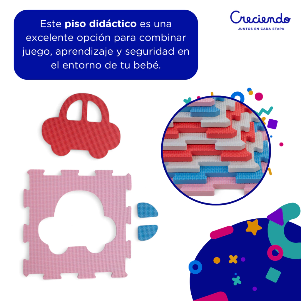 Este piso no solo ofrece seguridad y confort sino que también fomenta el desarrollo cognitivo y motor de tu bebé. Protege mientras juega o gatea, estimulando sus habilidades de manera segura. ¡Elegí el mejor ambiente para el crecimiento de tu pequeño!