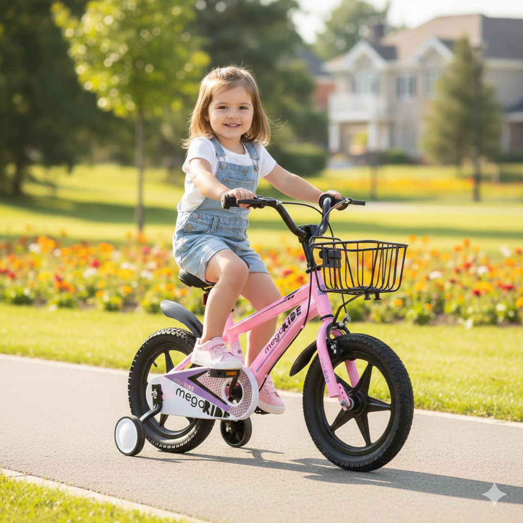 a rodado 14 MegaRide acompaña a los chicos en sus primeras salidas con un andar estable, cómodo y seguro. Incluye rueditas auxiliares, guardabarros y canasto frontal, con un cuadro resistente ideal para uso diario. Características destacadas • Para niños de 3 a 6 años • Rueditas auxiliares desmontables • Guardabarros delantero y trasero • Canasto metálico • Llantas tipo paleta • Cubre cadena completo • Cuadro robusto Medidas aproximadas • Largo total: 100 cm • Alto total: 70 cm • Altura del asiento: 55 cm • Ancho del manubrio: 54 cm • Distancia entre ejes: 65 cm Un modelo seguro y confiable para que disfruten pedaleando desde el primer día.