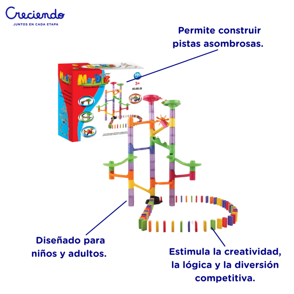 Juego De bolitas Didácticas 100 Piezas Super Marbie Deluxe. Prepárate para construir pistas increíbles y desafiar la velocidad con este divertido juego de canicas.
