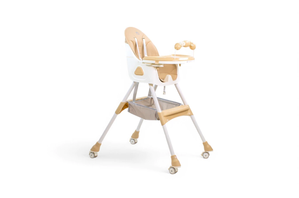 La Silla de Comer Mega Baby Venecia combina seguridad, confort y diversión con su arnés de 5 puntos, doble bandeja desmontable y barral de juguetes.